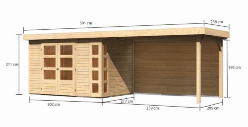 dřevěný domek KARIBU KERKO 4 + přístavek 280 cm včetně zadní stěny (9191) natur