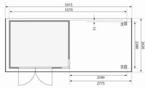 dřevěný domek KARIBU KERKO 5 + přístavek 280 cm včetně zadní stěny (9206) natur
