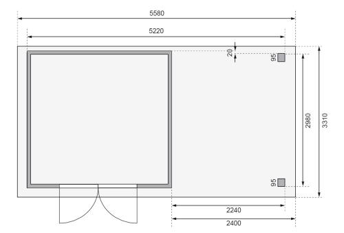 Věnujte prosím MIMOŘÁDNOU péči při budování základu pro domek. Základ postavte tak, aby horní hrana základu přesahovala asi 5 cm okolní terén. Základ musí být přesně vyvážen do vodorovné roviny a odvodněn, aby základové trámky ležely v rovině. Aby bylo zabráněno přímému kontaktu se zemí a vniknutí zemní vlhkosti do trámků, podložte nosný rošt domku pásky z bitumenové lepenky (nejsou součástí dodávky). Pro trvanlivost základu je nutno dodržet tyto nejdůležitější předpoklady - podklad, pravoúhlost a přesná rovina. S kvalitním základem vydrží domek o mnoho let déle. Nechte si poradit nebo základ zhotovit odborníkem-stavařem.