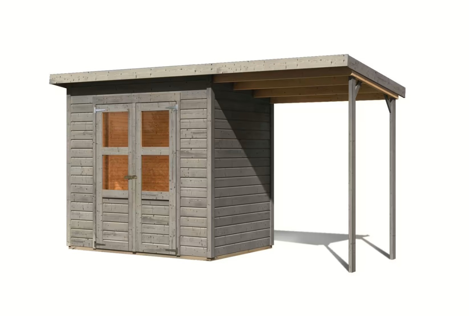 dřevěný domek KARIBU MERSEBURG 3 + přístavek 166 cm (9559) světle šedý