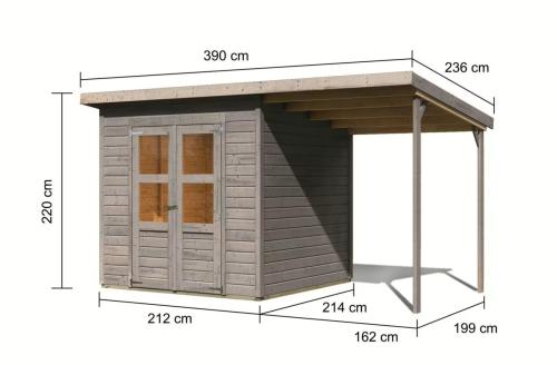 dřevěný domek KARIBU MERSEBURG 4 + přístavek 166 cm (9563) světle šedý