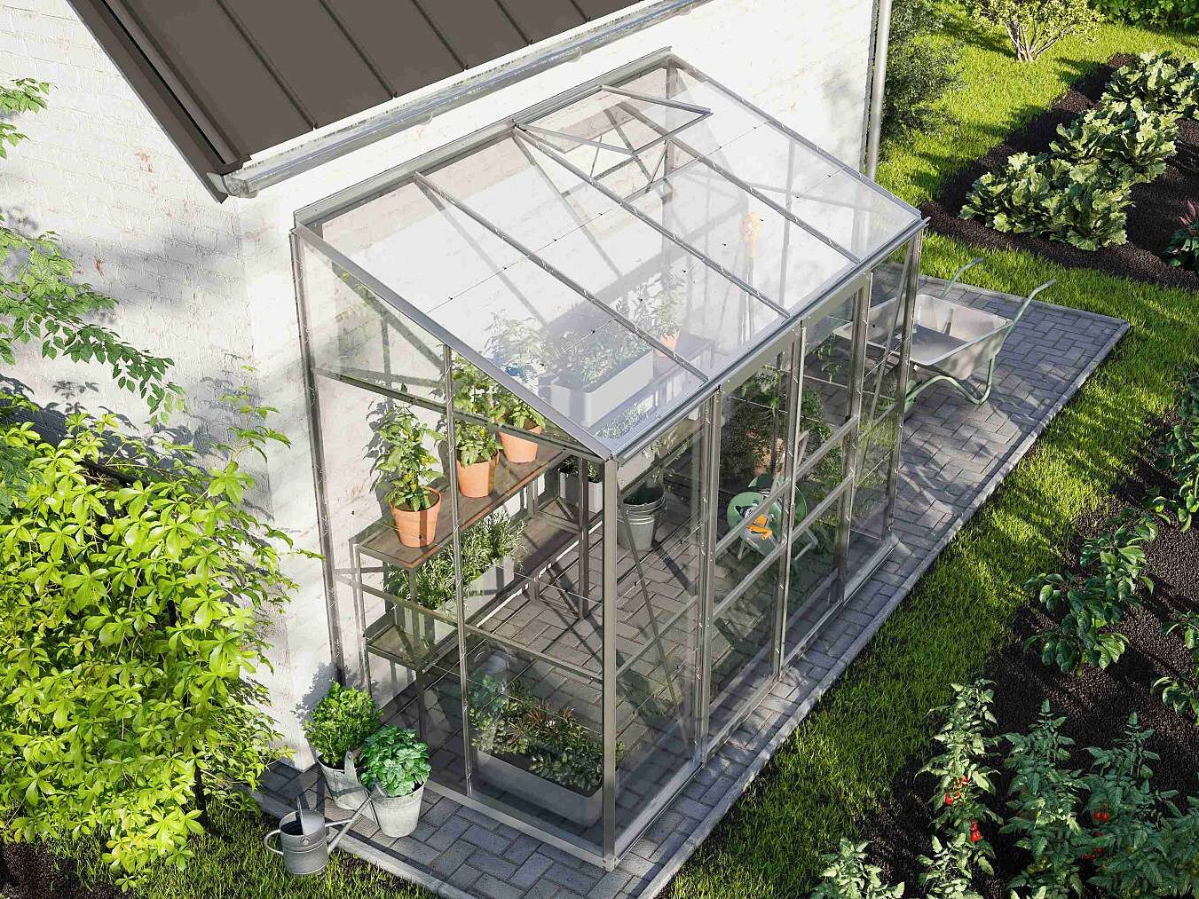 Skleník je určený na montáž k stene – zadná stena nie je súčasťou konštrukcie.