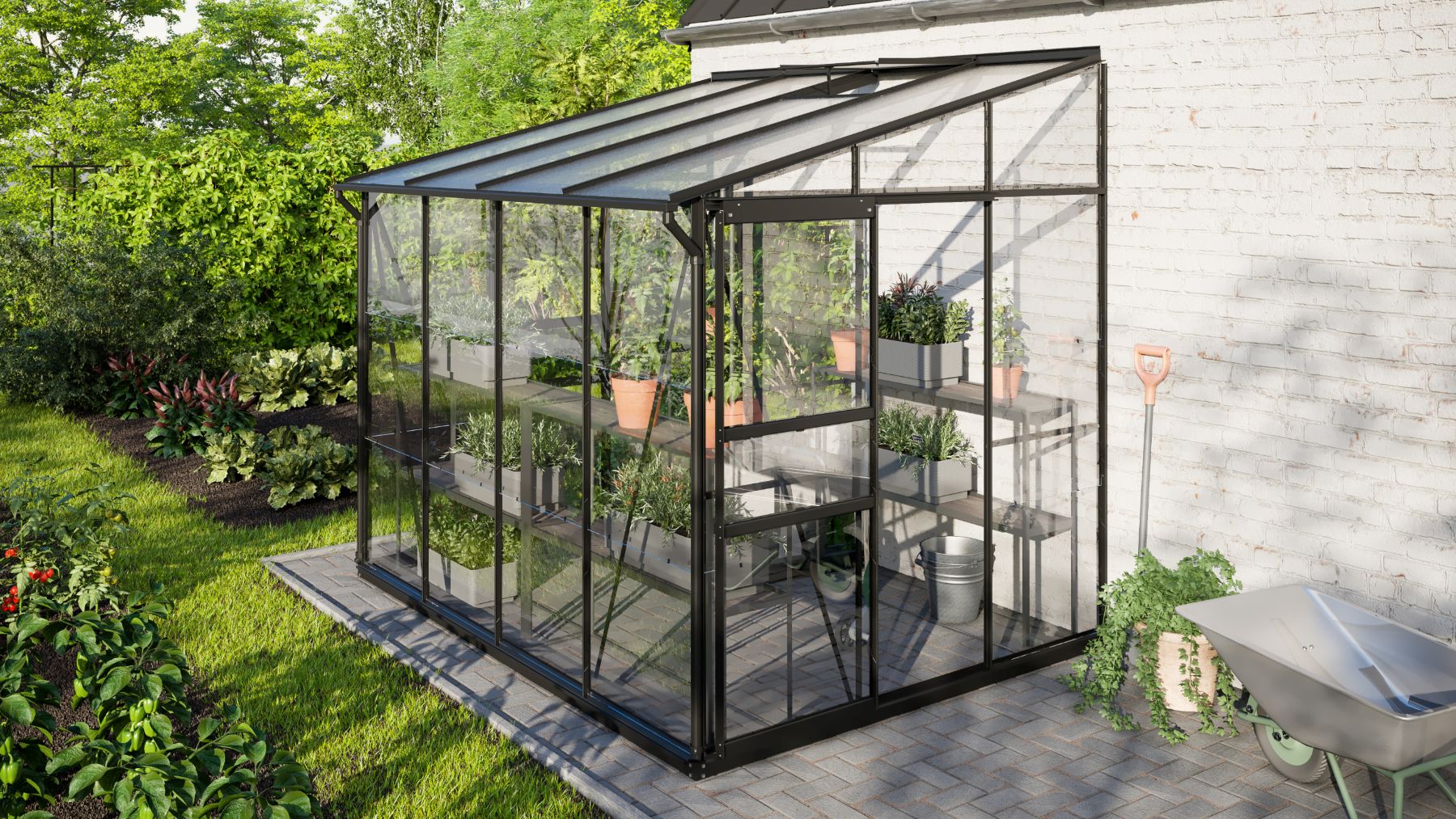 Skleník je určený na montáž k stene – zadná stena nie je súčasťou konštrukcie.