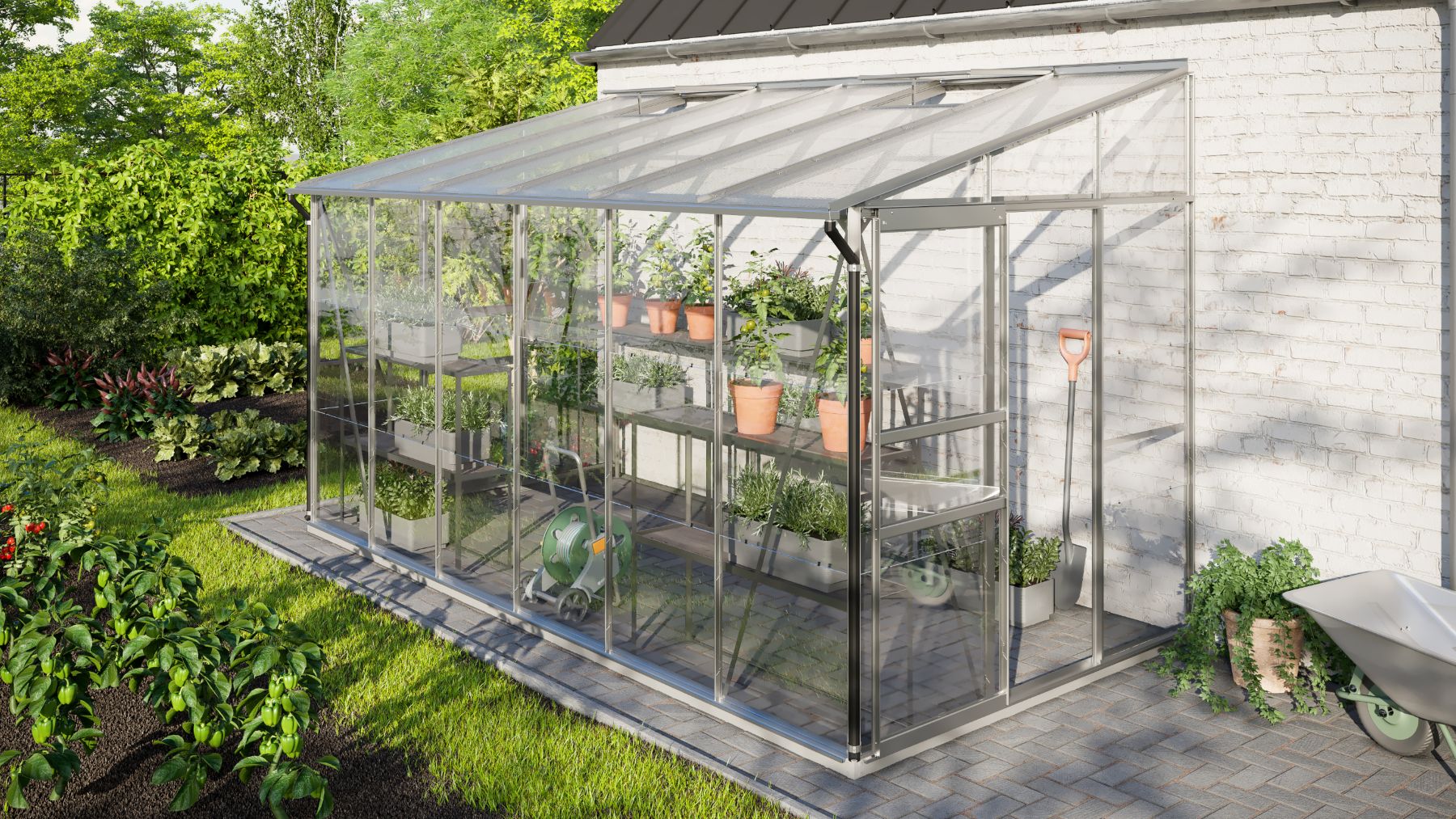 Skleníky radu IDA sú zaradené do kategórie PREMIUM - skleník je vyrobený značkovým výrobcom z Veľkej Británie a je certifikovaný nemeckou skúšobňou TÜV. Skleník je vyrobený z eloxovaných hliníkových profilov, presklenie je z kaleného číreho skla hrúbky 3 mm. Číre sklo zaisťuje výbornú svetelnú priepustnosť, takže do skleníka je krásne vidieť zo všetkých strán a kedykoľvek sa môžete pokochať pohľadom na pestovanú zeleninu alebo kvety. Presklenie je do hliníkových profilov kotvené pomocou oceľových sponiek.