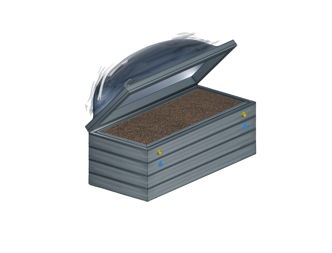• odnímatelné víko pařeniště je velkou výhodou pro letní měsíce, je vybaveno třípolohovým aretačním systémem otevírání, víko je vyrobeno z mléčného akrylátu s UV stabilizací, které zajišťuje optimální rozptyl světla a dlouhou životnost materiálu