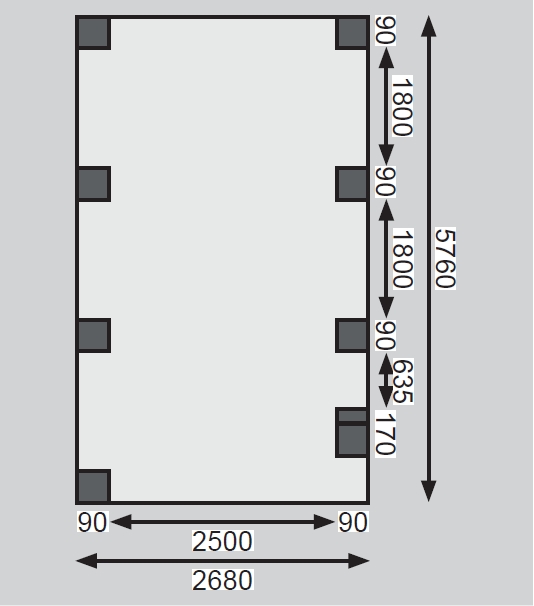 - vnější rozměry střechy - š 3,04 x d 6,76 m