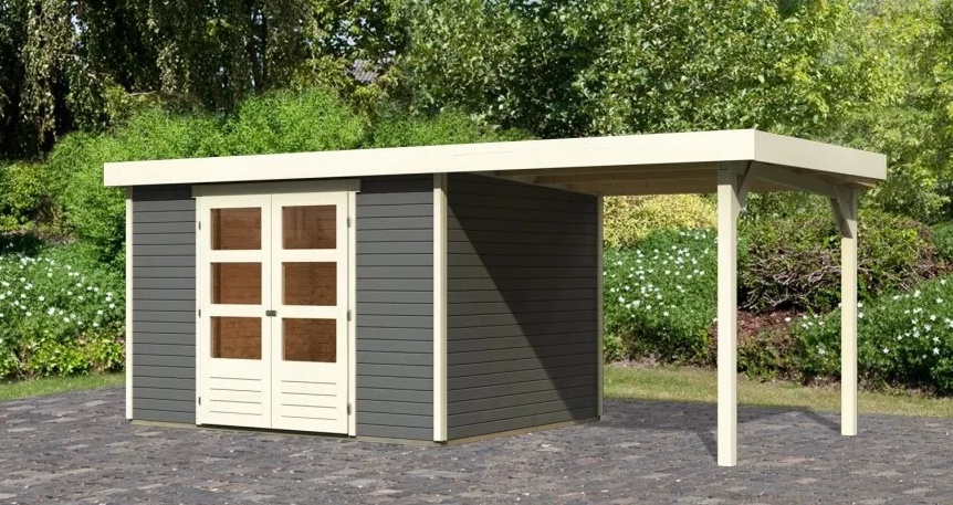 dřevěný domek KARIBU ASKOLA 5 + přístavek 240 cm (9154) terragrau