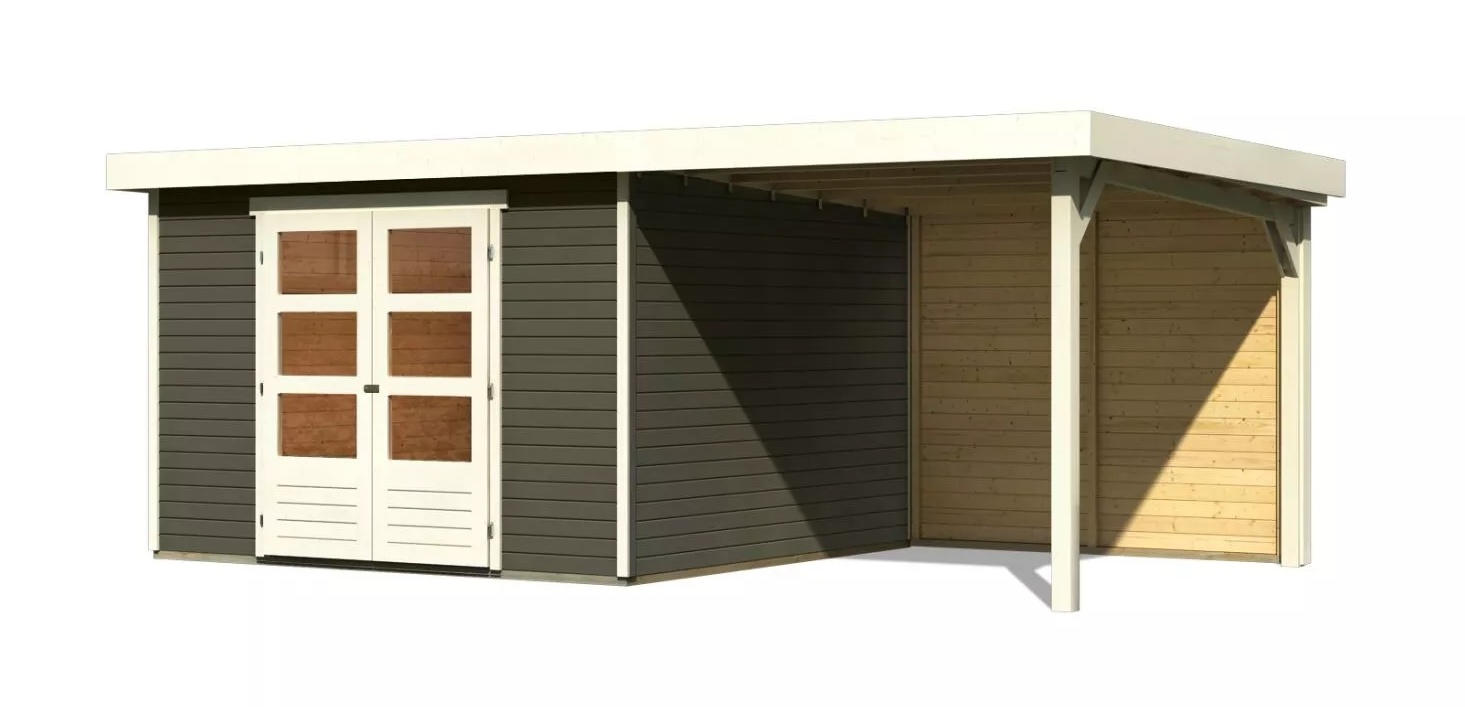 dřevěný domek KARIBU ASKOLA 6 + přístavek 240 cm včetně zadní stěny (23505) terragrau