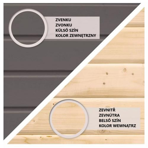 Tento model domku dodáváme v profesionálním nátěru KARIBU (odstín terragrau RAL 0604005):