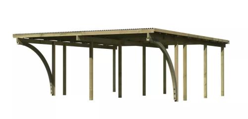 Přístřešek má obdélníkový tvar a svými rozměry vyhovuje většině modelů vozidel běžných na českém trhu. Celková zastřešená plocha je 5,63 x 6,76 m. Průjezdná výška je 206 cm. Střechu podpírá dvanáct dřevěných sloupků 9 x 9 cm. Konstrukce přístřešku je tlakově impregnována a je tak dobře chráněna proti dřevokazným houbám i hmyzu, ale i proti nepříznivým povětrnostním podmínkám. Impregnace je zdravotně nezávadná a naprosto bezpečná. Vzhledem k velkým plochám střechy a zatížení větrem je nutné připevnit přístřešek k zemi pomocí odpovídajících zemních kotev (nejsou obsahem dodávky - lze dokoupit jako příplatkové příslušenství).