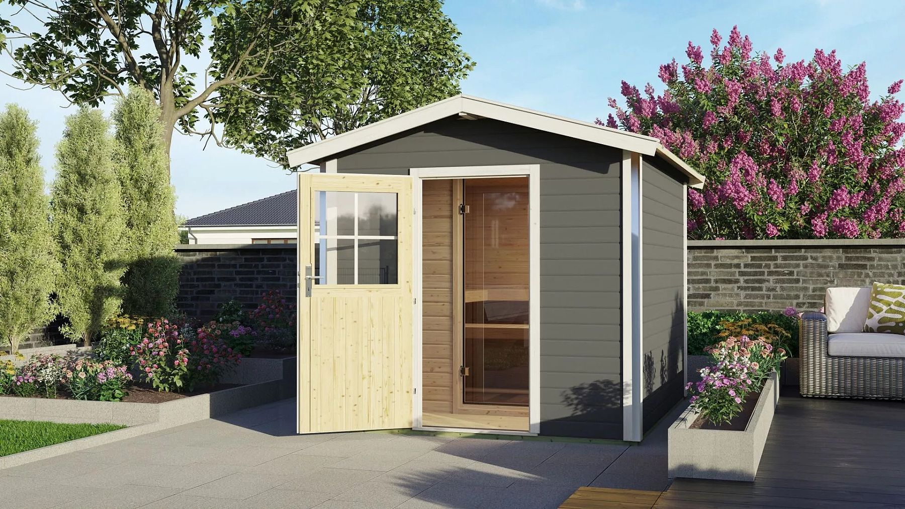 Tento model domku dodáváme v profesionálním nátěru KARIBU (odstín terragrau RAL 0604005):