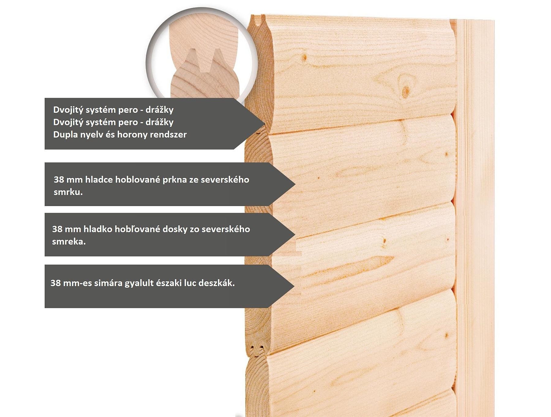 • 1x okno s izolačním dvojsklem 4 /16 / 4 mm s prostupem tepla K=1,1 W/m2K (okna je možné použít v saunovací místnosti i v předsíni)