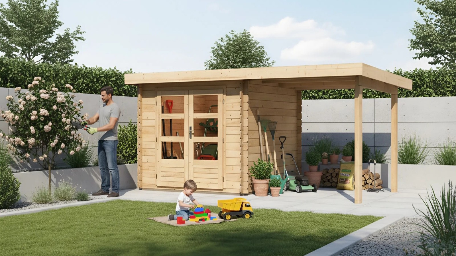 Základný model dreveného domčeka pre vašu záhradu. Tento model má pultovú strechu a dvojkrídlové dvere na pántoch s oknom v každom krídle. Stavebným materiálom domčeka sú drevené profily hrúbky 28 mm perfektne vyfrézované zo severského smreka. Dodávame ako stavebnicu v rozloženom stave, veľkou výhodou tohto radu je patentovaný rohový spoj 6-Plus. Spoločne tak zaisťujú nielen odolnú a stabilnú konštrukciu ale aj robustný celkový vzhľad. Strechu tvorí celistvá doska. To garantuje extrémne jednoduchú montáž, ktorú zvládne každý domáci majster.