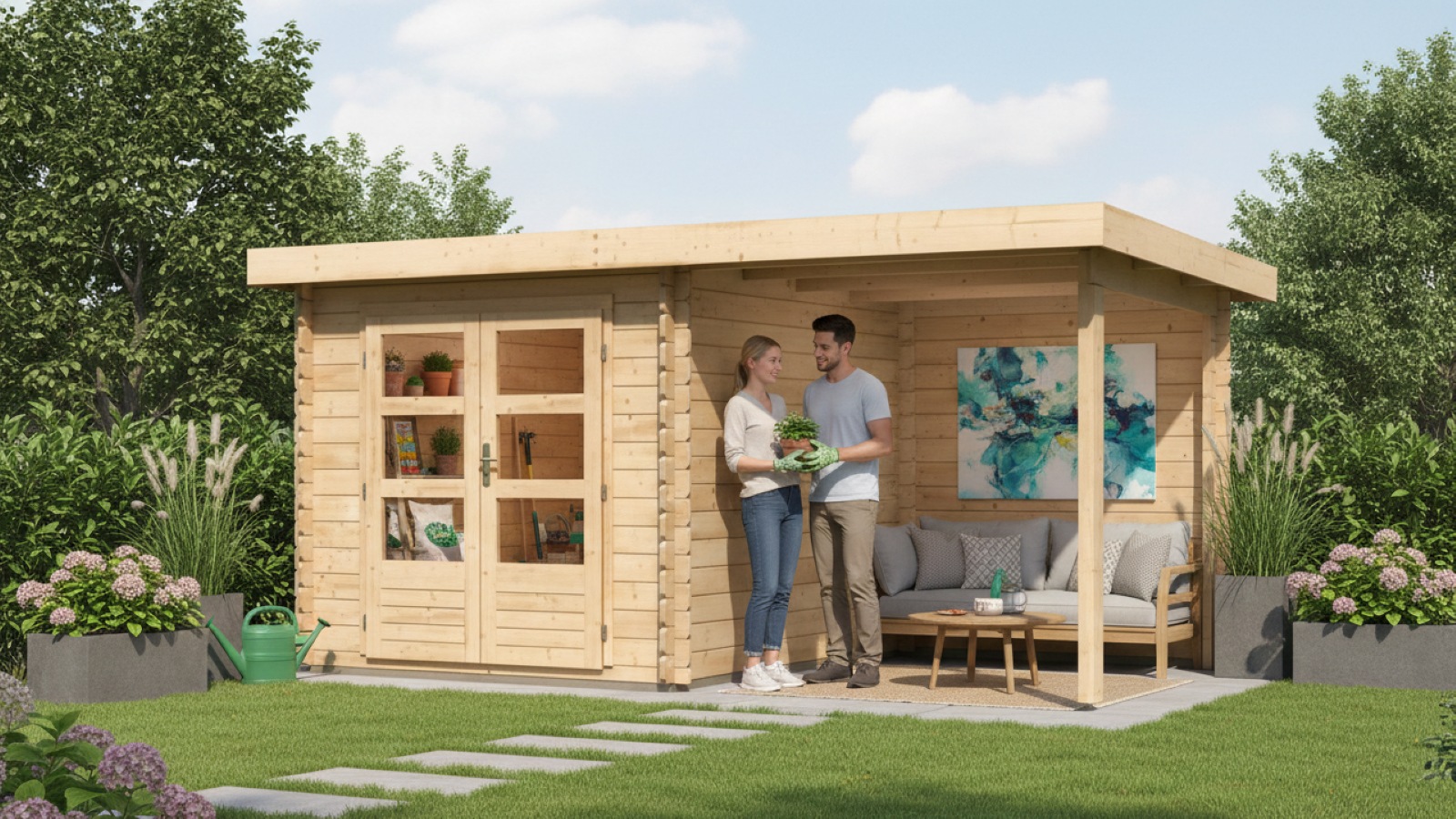 Táto verzia domčeka obsahuje aj prístavok vrátane zadnej steny dĺžky 200 cm.