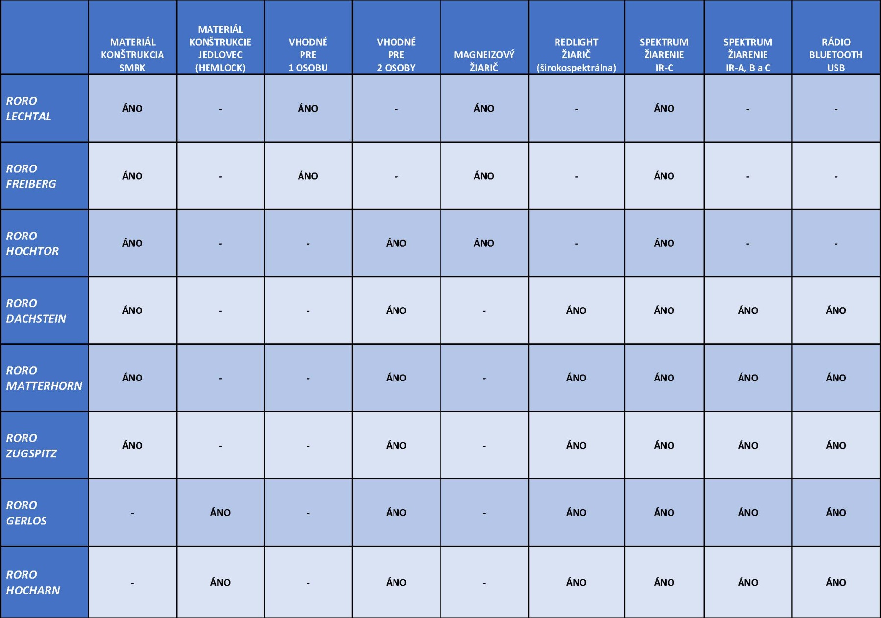 | Spektrum žiarenia | IR-C, čiastočne IR-B | IR-A, IR-B, IR-C |
