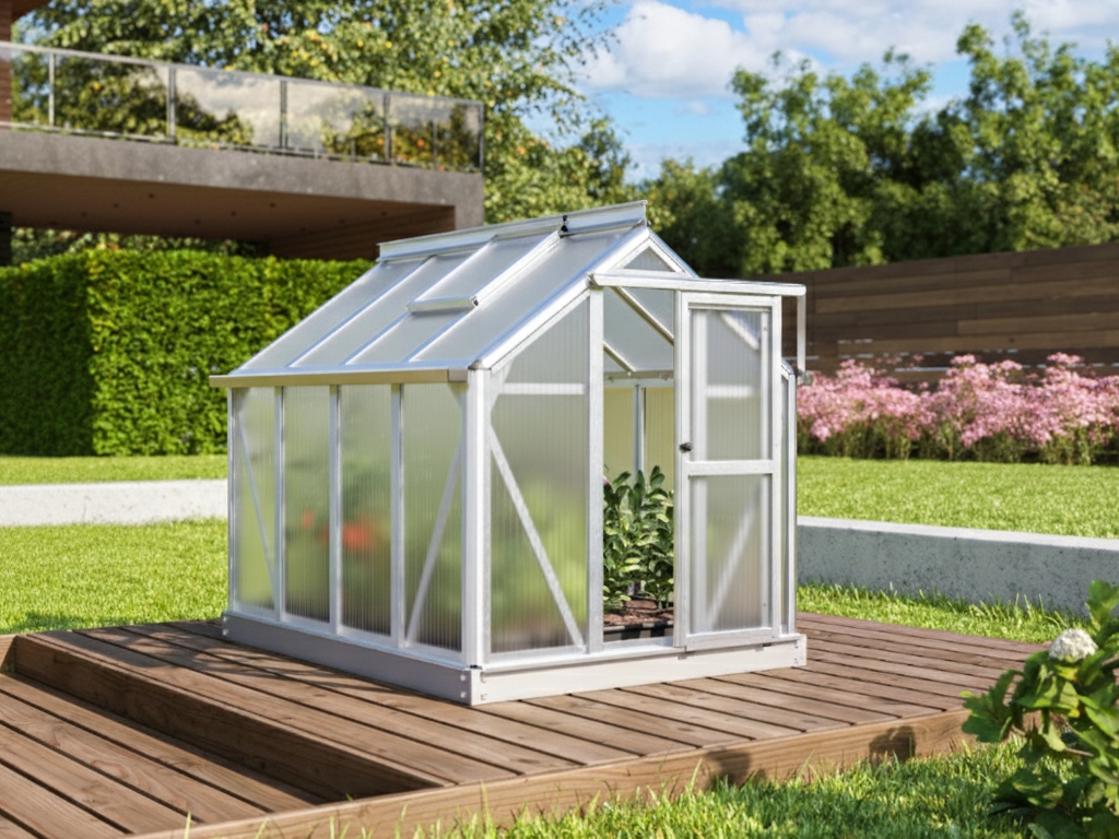 Hliníkový miniskleník na bylinky, š 0,87 x d 1,11 m x v 0,91 m, strieborná farba, 1x str. okno, polykarbonát 4 mm, 2x dvere, základňa v cene, plocha 0,96 m2.