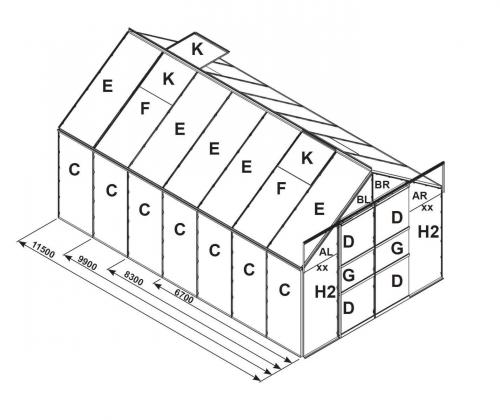 Obsah balenia a rozmery jednotlivých dosiek náhradného presklenia pre skleník URANUS 11500: