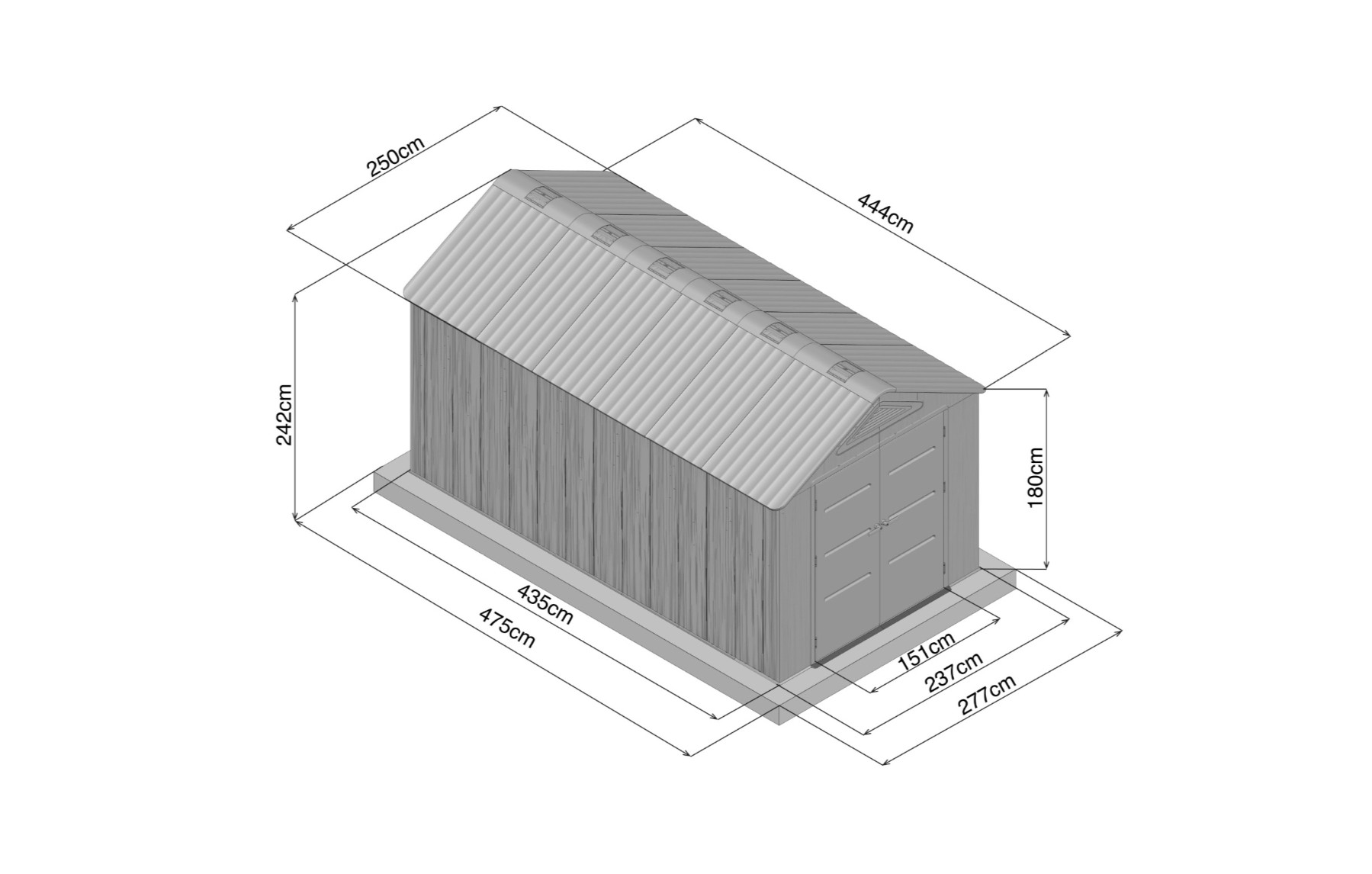 Robustný plastový domček "novej generácie" na uskladnenie záhradkárskych, športových, bazénových, grilovacích, campingových, motoristických a ďalších potrieb. Moderný design, jednoduchá montáž, celoročné použitie. Záhradný domček má nosnú kovovú konštrukciu a dvojité steny, strecha, dvojité dvere, podlaha sú vyrobené z masívneho veľmi odolného a prakticky nerozbitného plastu (vysokopevnostný polyetylén s UV filtrom). Plastová protišmyková podlaha je súčasťou domčeka (je v cene). Domček je vybavený dvojkrídlovými dverami na pántoch. Hrúbka dvojitej plastovej steny je 22 mm, hrúbka strechy je 36 mm. Sklon strechy je 30°, čo výrazne znižuje množstvo a tlak snehu na strechu. Materiál domčeka nežltne ani nekrehne, takže odpadá pravidelné natieranie domčeka ako je nutné v prípade napr. drevených domčekov - záhradný plastový domček je prakticky bezúdržbový. Domček je navrhnutý a vyrobený tak, aby montáž bola čo najjednoduchšia a najkratšia. Jednotlivé diely iba zaklapnete do susedných dielov a spoj zaistíte skrutkou.