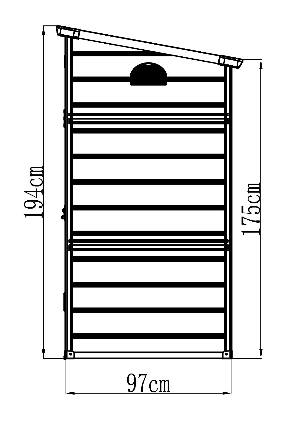 Jednokrídlové dvere s rozmermi š 75 x v 172 cm, dodávajú domčeku praktickosť a flexibilitu. Ventilačná mriežka zaisťuje optimálne odvetrávanie a cirkuláciu vzduchu vo vnútri domčeka, čo je kľúčové pre udržanie optimálneho stavu uložených vecí.