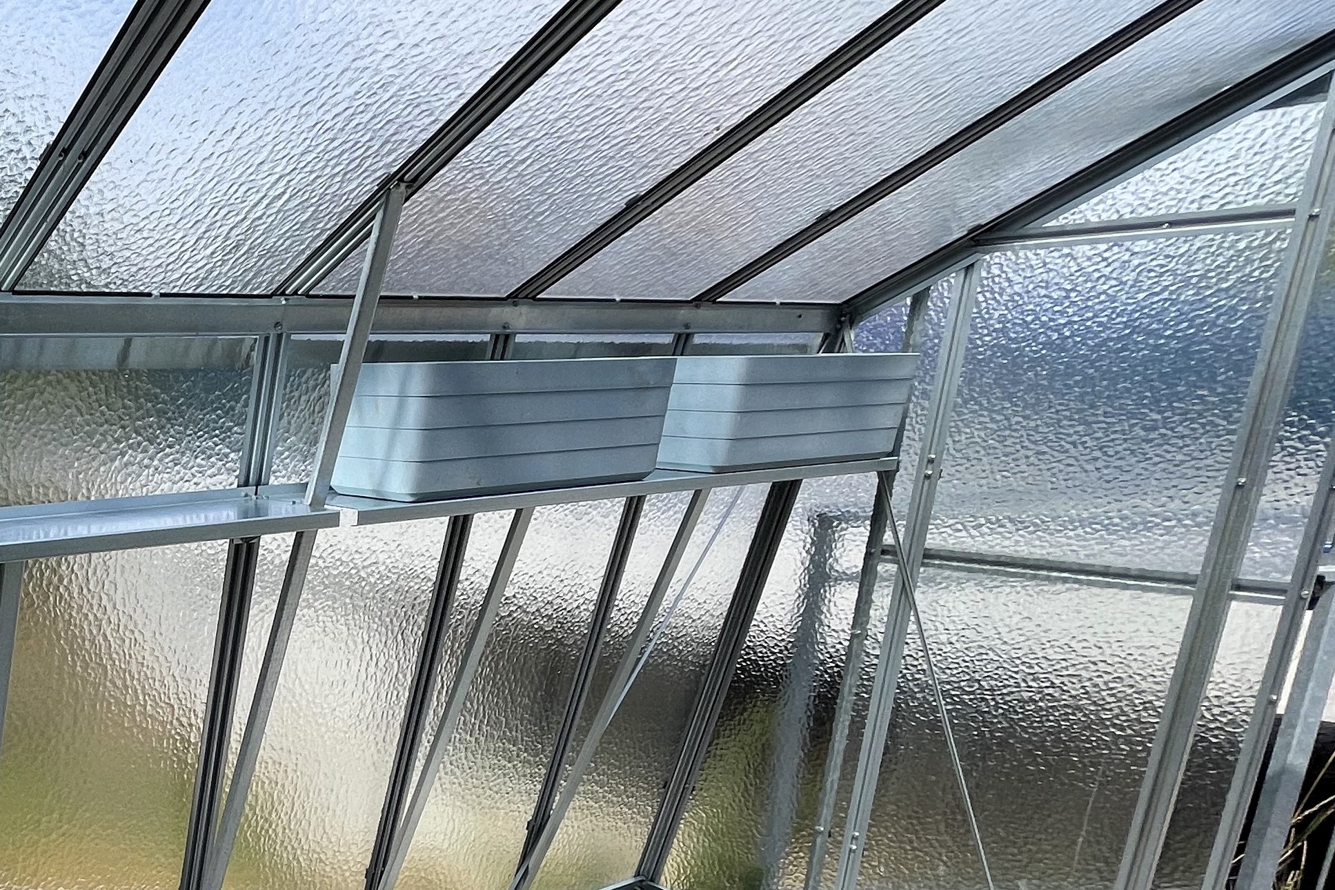 Police Vám umožnia odkladať rôzne potreby na pestovanie, ako je drobné náradie, hnojivá atp. Na polici je možné odkladať aj malé kvetináče a pestovať bylinky alebo previsnuté plodiny tak, aby Vám nezaberali miesto na pestovateľskej ploche skleníka. Pozor len na preťaženie police, aby nedošlo k poškodeniu skleníka.