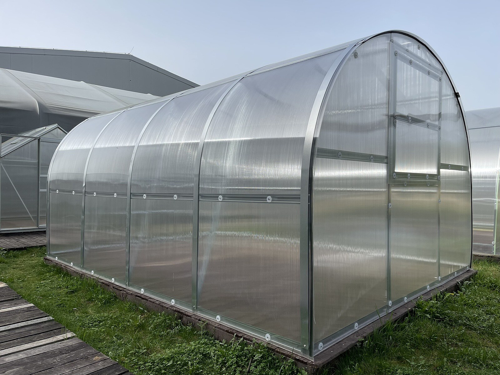 | oblúkový skleník LANITPLAST TIBERUS | pozinkovaný oceľový profil 1mm, rozostup oblúkov 100 cm, dvojité dvere vpredu, ventilačné okno vzadu, presklenie nutné vyrezať z dodaných polykarbonátových dosiek, možnosť montáže strešného okna - áno |