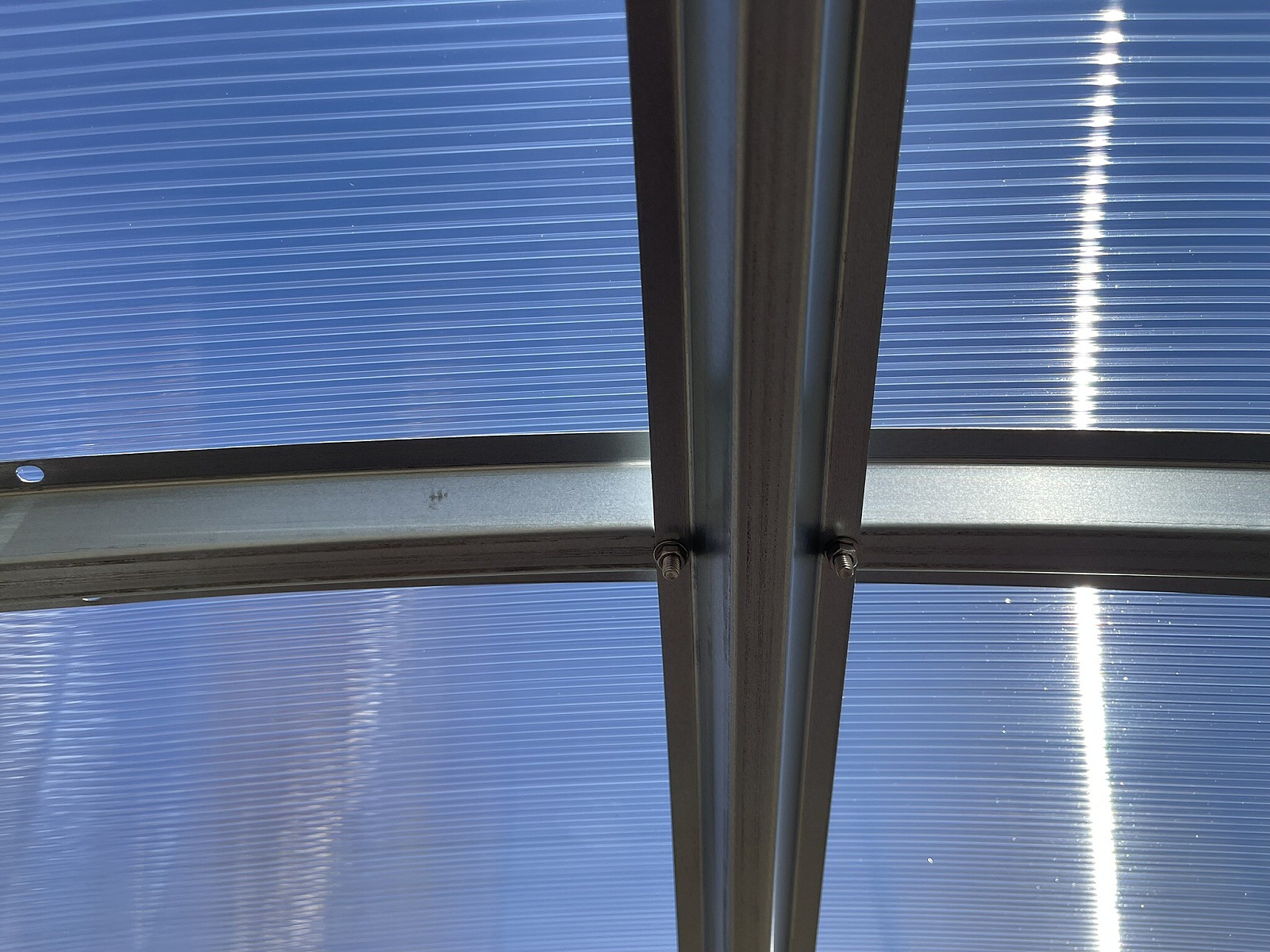 Konštrukcia - konštrukcia skleníka je zoskrutkovaná z pozinkovaných omega profilov hrúbky 0,6 mm. Materiál profilov je galvanicky pozinkovaný. Jednotlivé rebrá nosných oblúkov sú od seba vzdialené 100 cm. Dve podpery na každom oblúku garantujú vysokú únosnosť celej konštrukcie skleníka. Predné čelo skleníka má vstavané jednokrídlové delené dvere o svetlosti 95 x 186 cm a na zadnom čele je ventilačné okno s rozmermi š 95 x v 90 cm. Pokiaľ otvoríte hornú časť dverí a zadné okno, zaistíte tým pohodlné vetranie celého skleníka bez toho, aby do neho mali prístup deti alebo domáce zvieratá. Obsahom dodávky každého skleníka je jedno strešné okno s manuálnym ovládaním (otvorené / zatvorené). K oknu odporúčame dokúpiť automatický otvárač, ktorý otváranie a zatváranie okna na základe teploty v skleníku zariadi za Vás.