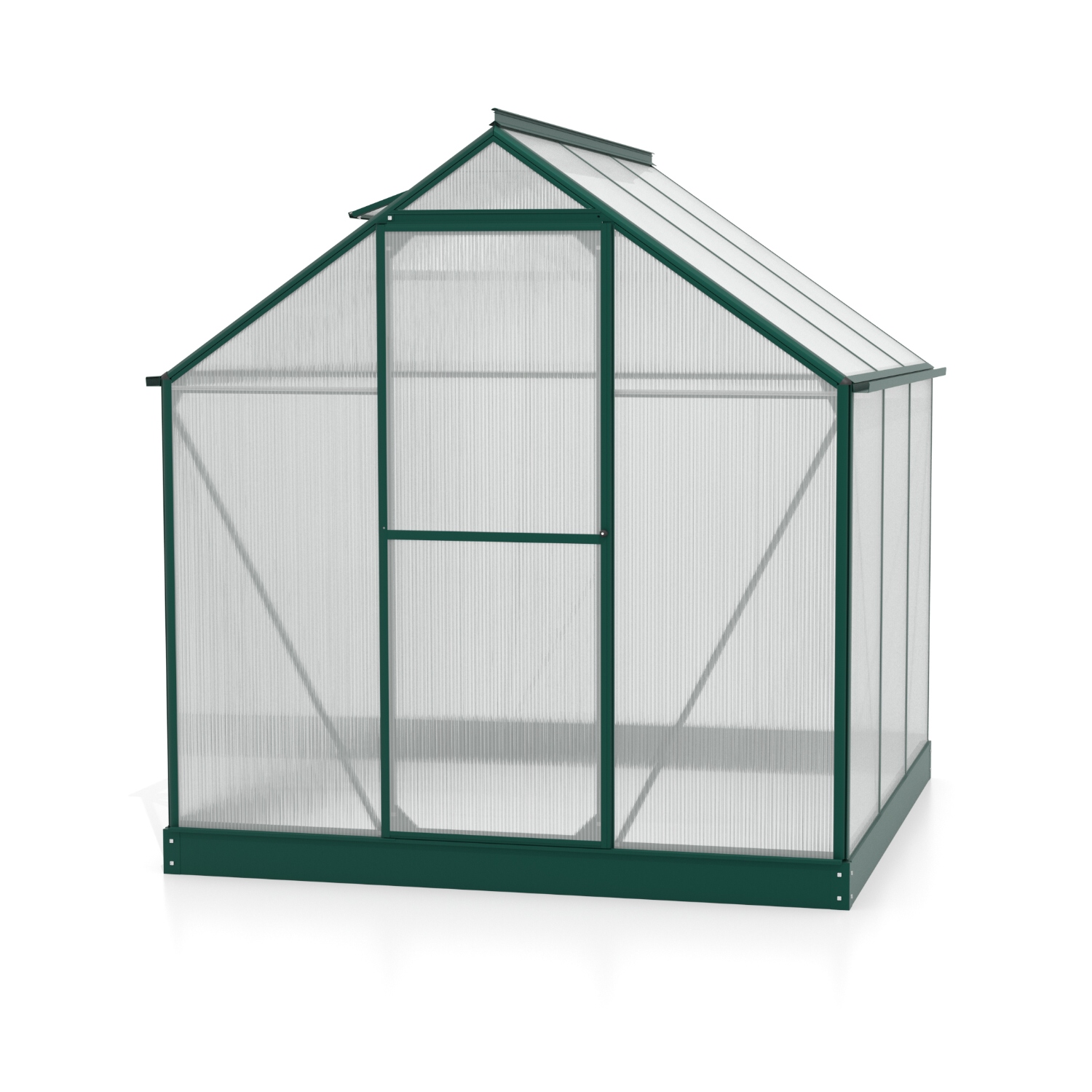 Hliníkový skleník, š 1,98 x 1,93 m, zelený, 1x str. okno, polykarbonát 4 mm, dvere na pántoch, plocha 3,82 m2.