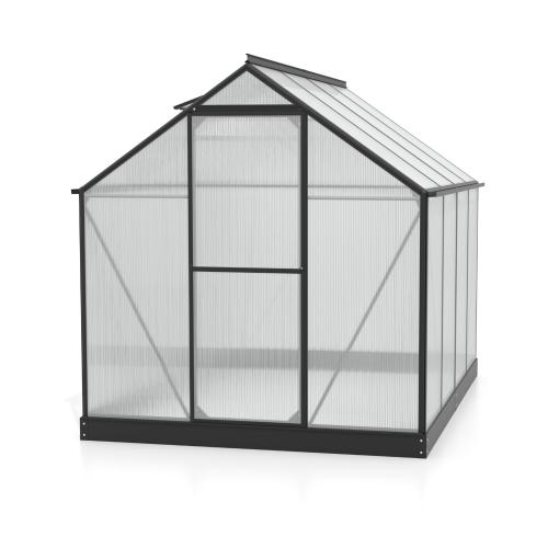 Hliníkový skleník, š 1,98 x d 2,56 m, čierny, 1x str. okno, polykarbonát 4 mm, dvere na pántoch, plocha 5,07 m2.