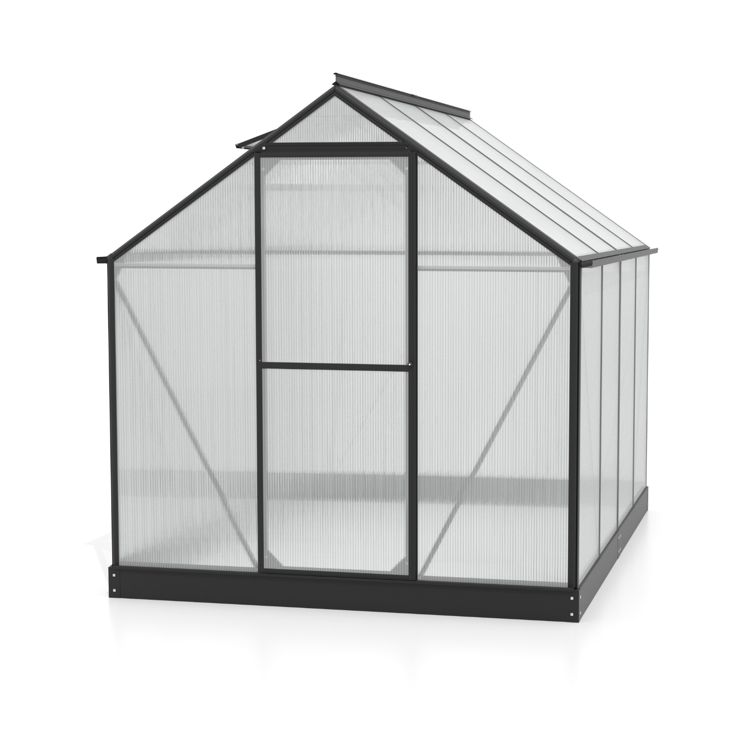 Hliníkový skleník, š 1,98 x d 2,56 m, čierny, 1x str. okno, polykarbonát 6 mm, dvere na pántoch, plocha 5,07 m2.