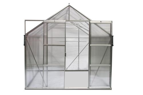 Obsahom balenia sú dvojkrídlové posuvné dvere (š x v otvore = 1,22 x 1,91 m), AL profily, presklenie, 4x strešné ventilačné okienko s manuálnym otváraním, všetok spojovací materiál. Skleník je možné postaviť napr. na murovanú podmurovku alebo na základňu z pozinkovaného plechu. Pri stavbe bez podmurovky dokúpenie základne odporúčame. Ku skleníku je možné dokúpiť rad nadštandardného príslušenstva - poličky, regály, ďalšie vetracie strešné aj bočné okienka, automatické otvárače k týmto okienkom, odkvapové sady, teplomery, vlhkomery, zavlažovacie zariadenia, elektrické odporové vykurovanie pôdy.