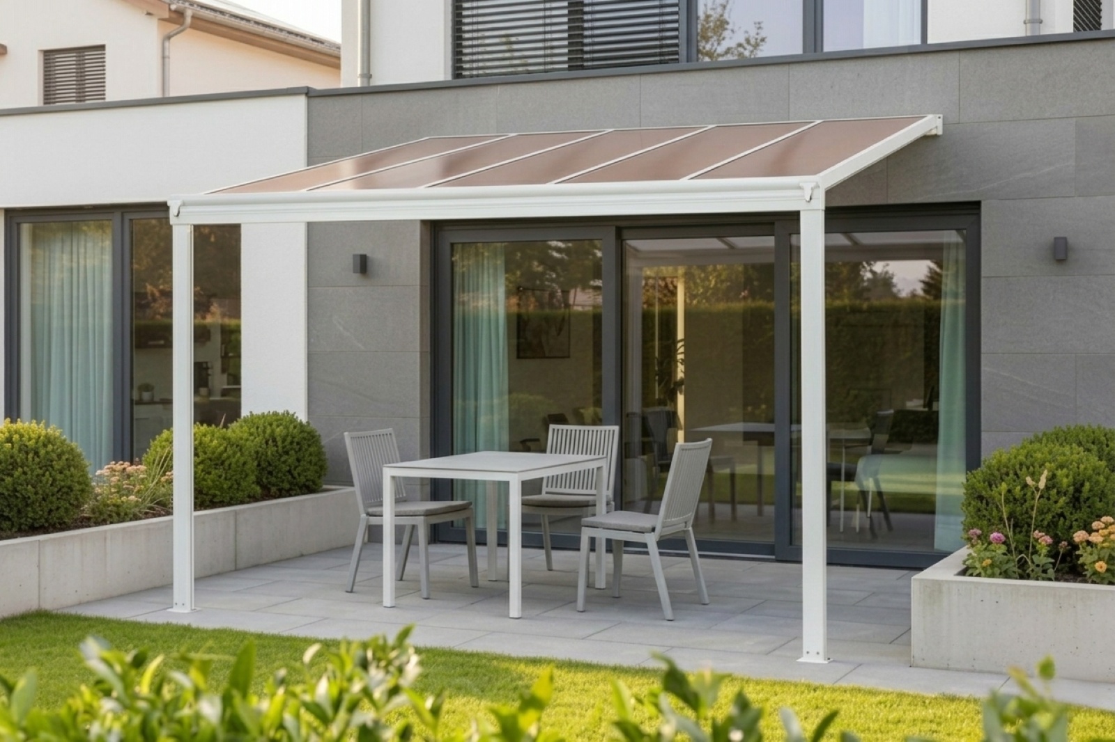 Hliníková pergola k stene, v ktorej nájdete príjemné miesto odpočinku hneď vedľa vášho domu. Konštrukcia pergoly je z odolnej hliníkovej zliatiny a je nastriekaná práškovou vypaľovanou farbou (komaxit), a preto trvalo odoláva prírodným klimatickým vplyvom. Strecha je vyrobená z polykarbonátových komôrkových dvojstenných dosiek hrúbky 6 mm, ktoré dodávame v 3 odtieňoch - číre alebo mliečne biele priesvitné (tvz. OPÁL) alebo dymovo hnedé (BRONZ). Z dôvodu zaistenia maximálnej kvality používame na strechu pergoly výhradne prémiové komôrkové polykarbonátové dosky MARLON ST LONGLIFE (výrobca BRETT MARTIN Veľká Británia), ktoré v ČR prešli náročným testami v štátom akreditovaných skúšobniach ako stavebný materiál (požiarne skúšky, mechanické skúšky). Na nerozbitnosť polykarbonátovej strechy krupobitím poskytujeme zmluvnú predĺženú záruku 10 rokov.