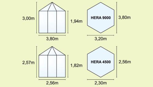 Pavilón HERA 4500 je zaradený do kategórie PREMIUM - pavilón je vyrobený značkovým výrobcom z Veľkej Británie. Pavilón je vyrobený z eloxovaných hliníkových profilov. Presklenie stien je z kaleného číreho skla hrúbky 3 mm (steny) a z nerozbitného komôrkového polykarbonátu 6 mm (strecha). Číre sklo zaisťuje výbornú svetelnú priepustnosť, takže do povilónu je krásne vidieť zo všetkých strán a môžete sa kochať pohľadom na pestovanú zeleninu alebo kvety. Presklenie strechy je z vysoko kvalitného dvojstenného polykarbonátu s UV filtrom (nekrehne, nežltne) od európskeho výrobcu. Polykarbonát aj sklo sú do hliníkových profilov uchytené pomocou oceľových sponiek. Súčasťou pavilónu je aj pozinkovaná oceľová základňa s výškou 6 cm. Na nerozbitnosť polykarbonátu krupobitím poskytujeme predĺženú záruku v dĺžke 10 rokov.