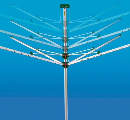 JUWEL COMFORT PLUS 600 - celohliníkový venkovní sušák na prádlo s ručně nasazovacím ochranným obalem (vakem) na zip. Nosná trubka o průměru 50 mm. Jednoduchá obsluha s dvoustupňovým mechanismem. Jednoduchý zemní šroub pro ukotvení v zemi = netřeba nic betonovat. Tento model je variabilně výškově nastavitelný - od cca 140 cm do cca 175 cm. Přibližně 52 m šňůry na prádlo.